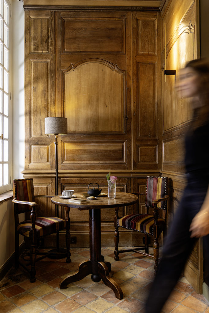 L’intervention s’inscrit dans une démarche de préservation de l’héritage qui nous est parvenu : les poutres apparentes sont restaurées, les boiseries murales et cheminées d’époque sont conservées, les sols en tomettes anciennes sont brossées et huilées avec soin.